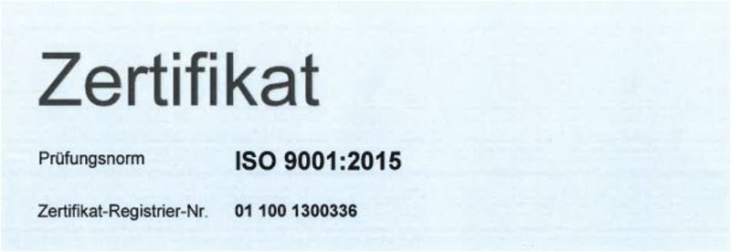 Auch in diesem Jahr konnten wir das Rezertifizierungsverfahren wieder erfolgreich abschließen. Zertifiziert nach Prüfungsnorm ISO 9001:2015 sind wir bereits seit 2004.
