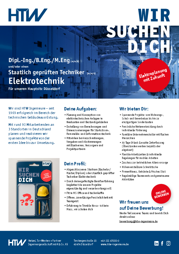 Werde Teil unseres Teams und bewirb dich direkt online: bewerbung@htw-ingenieure.de